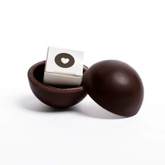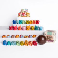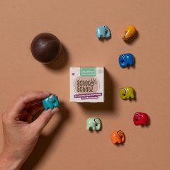 Bio-Zartbitter-Schokoladenkugel mit Überraschung, 25gIn der Edition „Glücksbringer“ befindet sich ein kleines handbemaltes Glückstier aus Speckstein.
